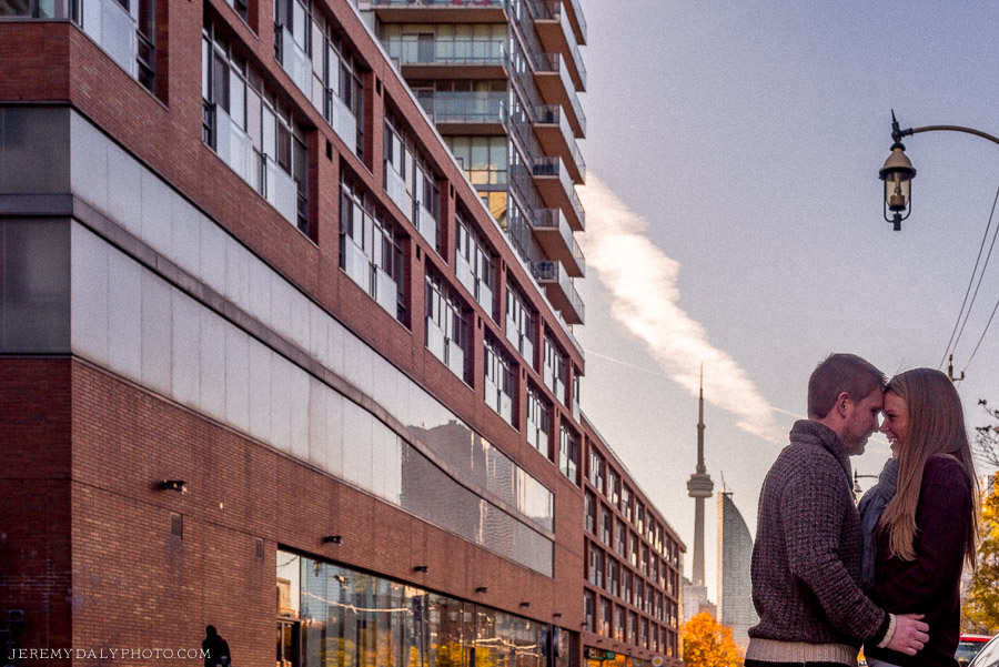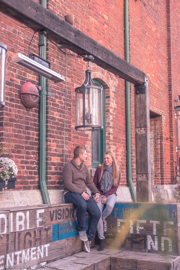 We decided to venture through the Distillery District in Toronto, one of my favorite places to take Toronto engagement photos. And then to the Humber Bay Arch Bridge.